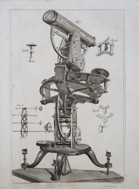 L’incisione raffigura una complessa “macchina equatoriale”, strumento geodetico atto alle misurazioni geografiche costruito su commissione dall’orologiaio Giuseppe Fiore nel 1779 per conto del napoletano Francesco Mango, al secolo Padre Eliseo della Concezione (Napoli, 1725-1809), Padre Provinciale e poi procuratore generale dell’Ordine dei carmelitani scalzi della città. Studioso colto e ingegnoso, si dedicò costantemente alla ricerca, in particolare nel campo sperimentale della fisica e della cartografia e legò in maniera solida la sua attività scientifica alla Reale Accademia di Scienze e di Lettere, fondata a Napoli da Ferdinando IV di Borbone nel 1780. Eliseo fece parte della commissione inviata in Calabria in seguito al catastrofico terremoto che sconvolse la regione il 5 febbraio 1783. ' La tavola è tratta dal celebre ' Istoria de' fenomeni del tremoto avvenuto nelle Calabrie, e nel Valdemone nell'anno 1783. Posta in luce dalla Reale Accademia delle Scienze, e delle Belle Lettere di Napoli. Napoli, Giuseppe Campo, 1784. Le incisioni dell'Istoria de' fenomeni ' illustrano il rovinoso terremoto calabrese del 1783 e furono commissionate dalla Regia Accademia Napoletana a un gruppo di scienziati, tra cui Michele Sarconi, Angiolo Fasano, Nicolò Pacifico, Padre Eliseo della Concezione e Antonio Minasi, oltre agli architetti e disegnatori Pompeo Schiantarelli, Ignazio Stile e Bernardino Rulli. La spedizione partì da Napoli il 5 aprile 1783 e nel 1784 il resoconto delle sue scoperte fu pubblicato da Campo, rendendola la prima spedizione scientifica sulle conseguenze di un terremoto mai organizzata in Italia. Il terremoto scosse la Calabria e la parte orientale della Sicilia per più di tre anni con diverse scosse, tra cui 5 che registrarono il grado XI della scala Mercalli. Morirono più di 30.000 persone, centinaia di villaggi furono distrutti, le montagne crollarono, i fiumi cambiarono il loro corso creando nuovi laghi e anche le coste furono rimodellate. L'autore dell'Istoria ' è il segretario dell'Accademia, Michele Sarconi. L’Atlante consiste in una raccolta di 68 tavole eseguite dagli architetti Pompeo Schiantarelli ed Ignazio Stile, tutti incisi da Antonio Zaballi, di una grande Carta corografica della Calabria ulteriore, ripiegata più volte, opera di P. Eliseo, e di un disegno raffigurante una «macchina equatoriale». Il progetto di tale opera, unica del suo genere, nasce in seno all’Accademia Napoletana, che istituisce ‘una peregrinazione letteraria nei luoghi della Calabria Ultra e del Valdemone, i quali erano stati i più potentemente della natura ne’ fatal’istanti del suo furore oltraggiati’. La partenza della spedizione degli Accademici Napoletani avviene via mare da Napoli il 5 aprile 1783, un paio di mesi dopo la prima scossa. Il drappello abbastanza nutrito è composto dal segretario dell’Accademia Michele Sarconi, dagli accademici pensionari Angiolo Fasano, Nicolò Pacifico, P. Eliseo della Concezione Teresiano e P. Antonio Minasi Domenicano, dai soci D. Giulio Candida, D. Giuseppe Stefanelli, D. Luigi Sebastiani, dagli architetti addetti ai disegni, Pompeo Schiantarelli con l’incarico di direttore, D. Ignazio Stile e D. Bernardino Rulli. Nella suddivisione dei compiti, il segretario Sarconi prende con sé il disegnatore D. Pompeo Schiantarelli, mentre Pacifico, Fasano e Sebastiani si fanno seguire da D. Ignazio Stile. D. Bernardino Rulli viene aggregato a P. Eliseo e a P. Minasi. Acquaforte, stampata su carta vergata coeva, piccola macchia di umidità nella parte inferiore, per il resto in ' ottimo stato di conservazione. Incisa da Antonio Zaballi da un disegno di Pompeo ' Schiantarelli. The etching depicts a complex "equatorial machine", a geodesic instrument suitable for geographic measurements built on commission by the watchmaker Giuseppe Fiore in 1779 on behalf of the Neapolitan Francesco Mango, known as Father Eliseo della Concezione (Naples, 1725-1809), Father Provincial and later Procurator General of the Order of Discalced Carmelites in the city. A learned and ingenious scholar, he devoted himself constantly to research, particularly in the experimental field of physics and cartography, and solidly linked his scientific activity to the Royal Academy of Science and Letters, founded in Naples by Ferdinand IV of Borbone in 1780. Eliseo was part of the commission sent to Calabria following the catastrophic earthquake that devastated the region on February 5, 1783. Engraving taken from the ' ' Istoria de' fenomeni del tremoto avvenuto nelle Calabrie, e nel Valdemone nell'anno 1783. Posta in luce dalla Reale Accademia delle Scienze, e delle Belle Lettere di Napoli. Naples: Giuseppe Campo, 1784. Plate taken from the ' Istoria de' fenomeni ' illustrate the ruinous Calabrian earthquake of 1783 and were commissioned by the Neapolitan Royal Acadamy to a group of scientists, including Sarconi himself, Angiolo Fasano, Nicolò Pacifico, Padre Eliseo della Concezione and Antonio Minasi, as well as the architects and draughtsmen Pompeo Schiantarelli, Ignazio Stile and Bernardino Rulli. The expedition left Naples on 5th April 1783, and in 1784 the account of their findings was published by Campo, making it the first scientific expedition on the consequences of an earthquake ever to be organised in Italy. The earthquake shook Calabria and the eastern part of Sicily for more than three years with several tremors, including 5 which registered grade XI on Mercalli's scale. More than 30,000 people died, hundreds of villages were destroyed, mountains collapsed, rivers changed their course creating new lakes, and even the coastline was reshaped. Copperplate, printed on contemporary laid paper, small moisture stain in lower central part, otherwise ' in excellent condition. Engraved by ' Antonio Zaballi after a drawing by Pompeo ' Schiantarelli. Cfr.