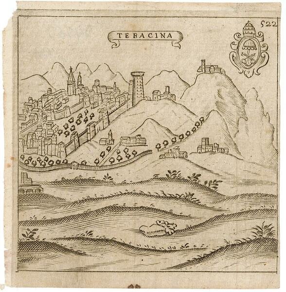 Graziosa veduta della cittadina laziale. Il alto a destra, sopra lo stemma, il nr 522