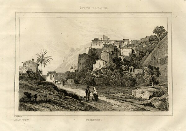 TERRACINA - "Terracine" veduta della strada che porta al paese, arroccato sulla destra.