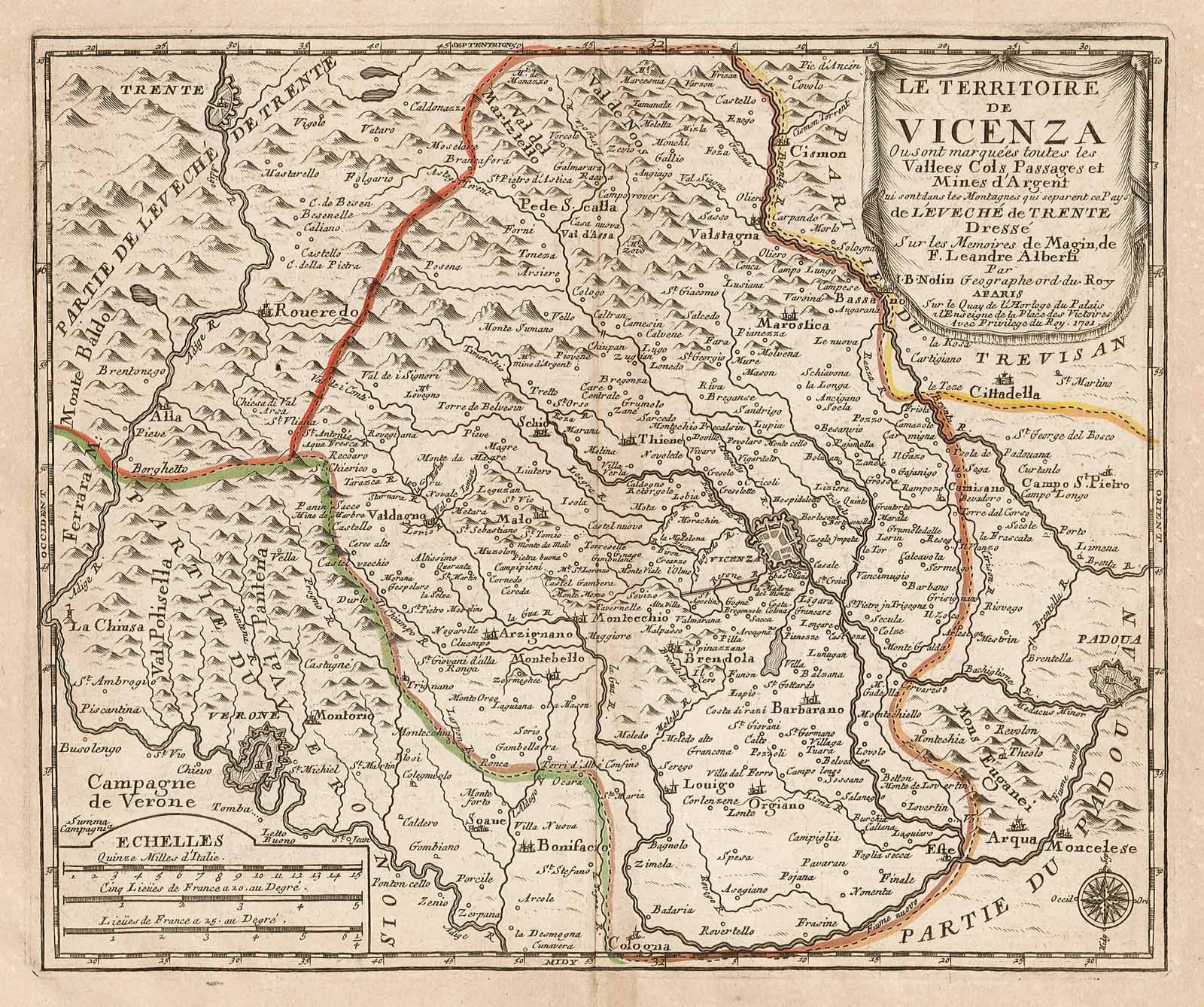Territoire de Vicenza ou sont marquées toutes les Valles Cols Passage et Mines d'Argent.