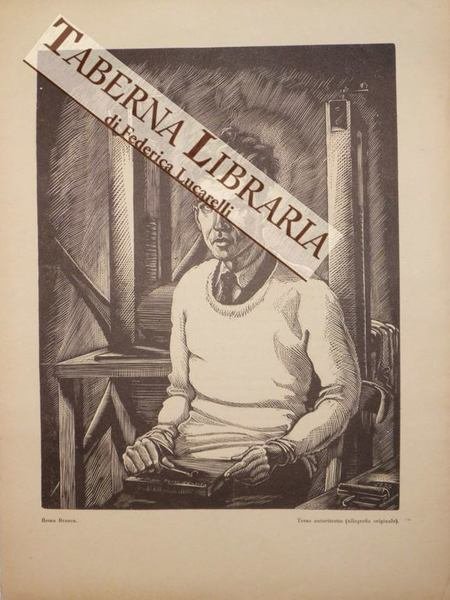 Xilografia originale in nero tratta dalla rivista "L'Eroica", n.240-241 (agosto-settembre 1938). Dimensioni relative alla sola parte incisa mm.245x190 su foglio di mm.325x245. Stato di conservazione buono.