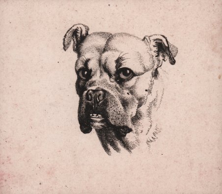 Testa di bulldog di profilo a sinistra. Acquaforte, 1796, senza data e firma. Sul frontespizio della raccolta, stampata a Napoli, è inciso (in caratteri tipografici) il titolo della serie: "TETES DE DIFFERERNTS ANIMAUX DESSINÉES D'APRES NATURE POUR DONNER UNE IDEE PLUS EXACTE DE LEURS CARACTERES PAR GUILLAUME TISCHBEIN DIRECTEUR DE L'ACADÉMIE ROYALE DE PEINTURE A NAPLES 1796". Conosciuto come Wilhelm Tischbein o "Goethe" Tischbein, fu il membro più famoso di una grande famiglia di artisti. Si formò a Kassel e Amburgo e negli anni 1770 si spostò tra diverse città della Germania e dell'Olanda, terminando a Berlino, dove divenne un ritrattista di successo; nel 1779 gli fu offerta una borsa di studio dal Landgraf dell'Assia-Cassel per andare in Italia; soggiornò a Zurigo con Lavater per un anno, che lo raccomandò a Goethe, che a sua volta gli assicurò il patrocinio del duca Ernst di Gotha. ' Nel 1782 fece da guida a Goethe nel viaggio italiano di quest'ultimo e nel 1789 nominato direttore dell'Accademia d'Arte di Napoli. Progettò numerosi grandi progetti, di cui solo l'edizione di Omero fu portata a termine: tra gli altri, una serie di vasi greci della collezione Hamilton, destinati a fare da seguito a quelli di d'Hancarville. Bella impressione, stampata su carta vergata coeva, rifilata al rame, in buono stato di conservazione. Bibliografia Andresen 1878, Der Deutschen Maler-Radierer des 19 Jahrhunderts (II.53.122); cfr. H. Mildenberger, 'Johann Heinrich Wilhelm Tischbein (1751-1829) in G. Bartrum (ed.), exhib.cat., BM, London, 'German Romantic prints and drawings from an English private collection', 2011 pp. 120-9. ' The head of a bulldog in profile to left. Etching, 1796, without date and signature. The title page is lettered (in letterpress) with the series title: "TETES DE DIFFERERNTS ANIMAUX DESSINÉES D'APRES NATURE POUR DONNER UNE IDEE PLUS EXACTE DE LEURS CARACTERES PAR GUILLAUME TISCHBEIN DIRECTEUR DE L'ACADÉMIE ROYALE DE PEINTURE A NAPLES 1796". Known as Wilhelm Tischbein or "Goethe" Tischbein, he was the most famous member of a large family of artists. He was trained in Kassel and Hamburg and in the 1770s moved between different cities in Germany and Holland, ending in Berlin, where he became a successful portrait painter; in 1779 he was offered a scholarship by the Landgraf of Hesse-Cassel to go to Italy; he stayed in Zurich with Lavater for a year, who recommended him to Goethe, who in turn secured him the patronage of Duke Ernst of Gotha. ' In 1782 he served as Goethe's guide on the latter's Italian trip and in 1789 appointed director of the Naples Academy of Art. He planned numerous major projects, of which only the edition of Homer was completed: among others, a series of Greek vases from the Hamilton collection, intended as a follow-up to those of d'Hancarville. A fine impression, printed on contemporary laid paper, trimmed to the platemark, good condition. Bibliografia Andresen 1878, Der Deutschen Maler-Radierer des 19 Jahrhunderts (II.53.122); cfr. H. Mildenberger, 'Johann Heinrich Wilhelm Tischbein (1751-1829) in G. Bartrum (ed.), exhib.cat., BM, London, 'German Romantic prints and drawings from an English private collection', 2011 pp. 120-9. Cfr.