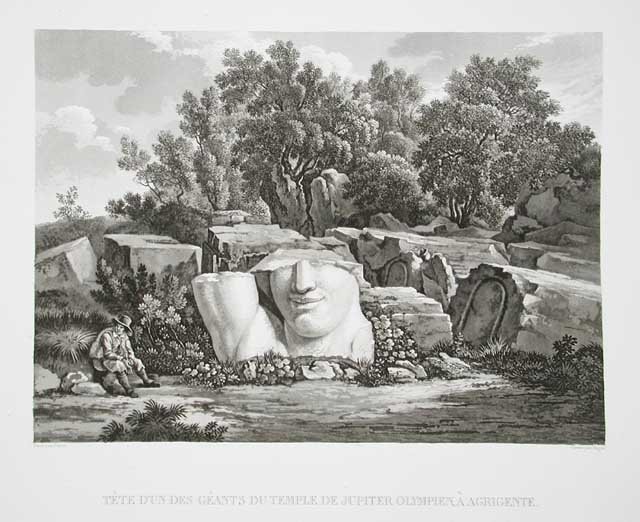 Téte d'un des géants du temple de Jupiter Olympien a Agrigénte | Stampe | Gigault de la Salle