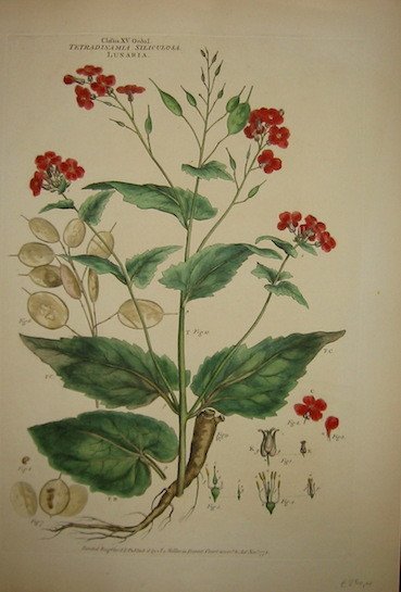 Incisione originale su rame (cm. 31x45 più ampi margini bianchi) tratta dalla monumentale opera ‘Illustratio systematis sexualis Linnaei.’. Carta vergellata con filigrana. Coloritura d’epoca all’acquarello. Ottimo esemplare.