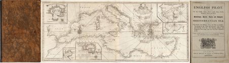 The English pilot. Part III: Describing the Sea-coasts, Capes, Head-lands, Bays, Roads, Harbours, Rivers and Ports; together with the Soundings, Sands, Rocks and Dangers in the whole Mediterranean Sea, likewise the Courses and Distances from one Place to another. The Setting of the Tides and Currents. The Ebbing and Flowing of the Sea. The Bearing, Distance and Prospect of the Land, and how thwy shew themselves at Sea. Carefully corrected, with new Additions of several Ports, Harbours, Bays, and Prospects of Land, never before made Public, London, Printed for J. Mount, and T. Page on Tower-Hill MDCCLXXXI (1781).Volume in-folio (480x310 mm), legatura coeva in pelle, 86+38 pp., 17 carte geografiche incise a doppioa pagina, una più volte ripiegata raffigurante l'intero Mediterraneo pubblicata per la prima volta da Charles Price nel 1730.Il The English Pilot fu un importante atlante nautico britannico, pubblicato dal 1671 al 1803.Ideato da John Seller, venne proseguito dltri editori tra cui Charles Price, John Thornton e la ditta Mount & Page.La parte III copre tutto il Mar Mediterraneo, in 14 sezioni, con frontespizio, testo descrittivo e un set di diciassette mappe. Le carte dell'Englis Pilot erano intese come carte per la navigazione, quindi ci fu uno sforzo per renderle accurate. L'opera include la grande carta nautica del Mar Mediterraneo, arricchita da cartigli contenenti piani nautici di Civitavecchia, Livorno, Nettuno e delle baie di Tunisi e Alessandretta. La carta è firmata da William Mount e Thomas II Page, rispettivamente figlio di Richard e Thomas I. Un esemplare della tavola, con la data 1730 è conservato in una raccolta di carte - senza titolo e data - di Charles Price nella collezione della British Library (Maps C.8.b.16, cfr. Shirley p. 1270, M.PRI-1a, 19). Charles Price finì in prigione (1731) per non aver onorato i propri debiti economici; probabile quindi che la lastra passò nelle mani della tipografia Mount & Page. La troviamo inclusa nel volume III del The English Pilot, curata dagli editori John Mount e Thomas II Page tra il 1730 ed il 1771 (cfr. Shirley, p. 1260, M.M&P-8°, 6). La data “1730” viene abrasa nelle tirature successive dell’opera. Il terzo volume dell’English Pilot, è noto in 19 diverse edizioni, a partire dal 1703 e fino al 1803. Basato sulle carte del Mediterraneo stampate da John Seller nel 1677, viene in seguito aggiornato da nuove e migliori carte.Bibliografia: cfr. National Maritime Museum, Catalogue of the Library - Vol. Three, Atlas & Cartography, Londra, 1971, pp. 460-462; R. Shirley, Maps in the Atlases of the British Library, Londra, 2004, pp. 1257, M.M&P-7c, (1, 2); p. 1260, M.M&P-8a (6); pp. 1263-1264, M.M&P-13b (11); p. 1270, M.PRI-1a (19); cfr. The Compleat Plattmaker: essays on Chart, Map and Globe Making in England in the Seventeenth and Eighteenth Centuries, Berkeley, 1978. The English pilot. Part III: Describing the Sea-coasts, Capes, Head-lands, Bays, Roads, Harbours, Rivers and Ports; together with the Soundings, Sands, Rocks and Dangers in the whole Mediterranean Sea, likewise the Courses and Distances from one Place to another. The Setting of the Tides and Currents. The Ebbing and Flowing of the Sea. The Bearing, Distance and Prospect of the Land, and how thwy shew themselves at Sea. Carefully corrected, with new Additions of several Ports, Harbours, Bays, and Prospects of Land, never before made Public, London, Printed for J. Mount, and T. Page on Tower-Hill MDCCLXXXI (1781).Folio (480 x 310 mm), J. Mount, T. Page, 1781, Contemporary calf, woodcut Royal arms on title, 17 engraved maps, woodcut coastal profiles and illustrations in the text.The English Pilot was an important British sea-atlas published from 1671 to 1803. Initially published by John Seller, publication of the atlas changed hands periodically, with other publishers including Charles Price, John Thornton, and the Mount & Page firm. Part III covers the whole Mediterranean Sea, in 14 sections, with title page, descriptive text, and set of seventeen maps. Features a large folding map titled "A Correct Chart of the Mediterranean Sea from the Coast of Portugal to the Levant." and 16 other maps which are double-page folio sheets covering parts of the Mediterranean and are all embellished with compass roses, rhumb lines and costal profiles.The charts from the English Pilot were intended as working charts so there was an effort to make them accurate, although predictably, many seamen complained that the charts were consistently out of date and that changes were slow to appear, a charge levelled at virtually every British, French and American Chart maker, including the respective governments of these nations. Ironically, it was in no small part due to the proprietary nature of the information included in the maps and sailing directions that there was a tendency for commercial pilots to pass the information from mariner to chart-maker more slowly than might otherwise have been the case, although the chart makers on the Thames and otherwise were undoubtedly reluctant to immediately make each and every necessary correction, for fear of undermining the economic viability of their businesses.Bibliografia: cfr. National Maritime Museum, Catalogue of the Library - Vol. Three, Atlas & Cartography, Londra, 1971, pp. 460-462; R. Shirley, Maps in the Atlases of the British Library, Londra, 2004, pp. 1257, M.M&P-7c, (1, 2); p. 1260, M.M&P-8a (6); pp. 1263-1264, M.M&P-13b (11); p. 1270, M.PRI-1a (19); cfr. The Compleat Plattmaker: essays on Chart, Map and Globe Making in England in the Seventeenth and Eighteenth Centuries, Berkeley, 1978. Cfr. S. Bifolco, "Mare Nostrum, Cartografia nautica a stampa del Mar Mediterraneo" (2020), pp. 218-219, tav. 100.