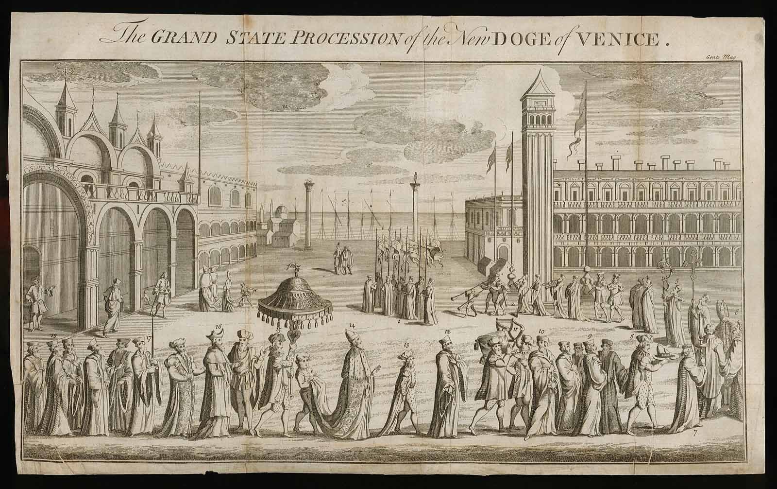 Processione del Doge in piazza San Marco, pieghe editoriali