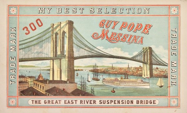 Cromolitografia basata sul soggetto di Currier ed Ives di pochi anni prima, eseguito per l'inaugurazione del ponte nel 1883. Mm 268x447. Ottime condizioni. <BR>Cromolitograph, Mm 268x447. Based on the view by Currier and Ives printed for the bridge opening in 1883. Very good condition <BR>