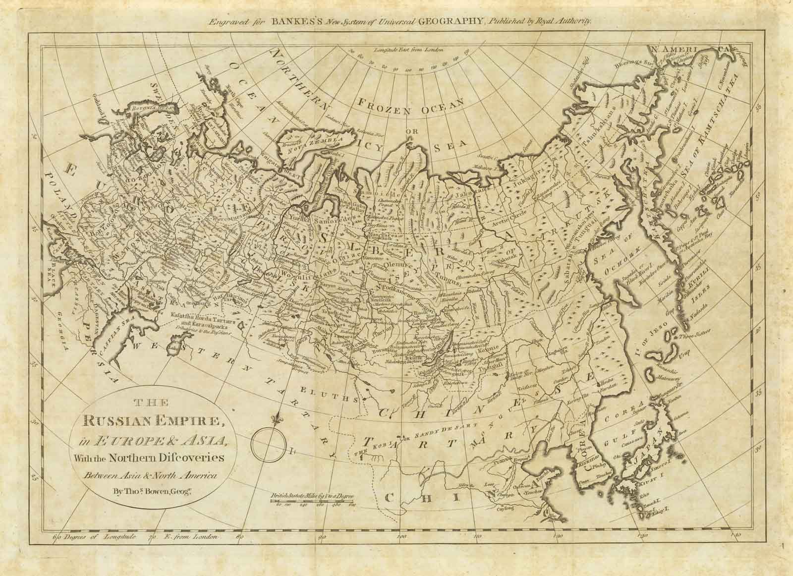 The Russian Empire in Europe & Asia with the northern discoveries between Asia & North America by Tho.s Bowen Geog.r
