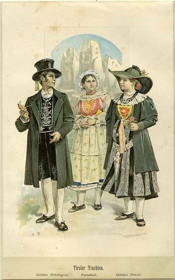 Tiroler Trachten. Gröden (Bräutigam) - Fassathal - Gröden (Braut).