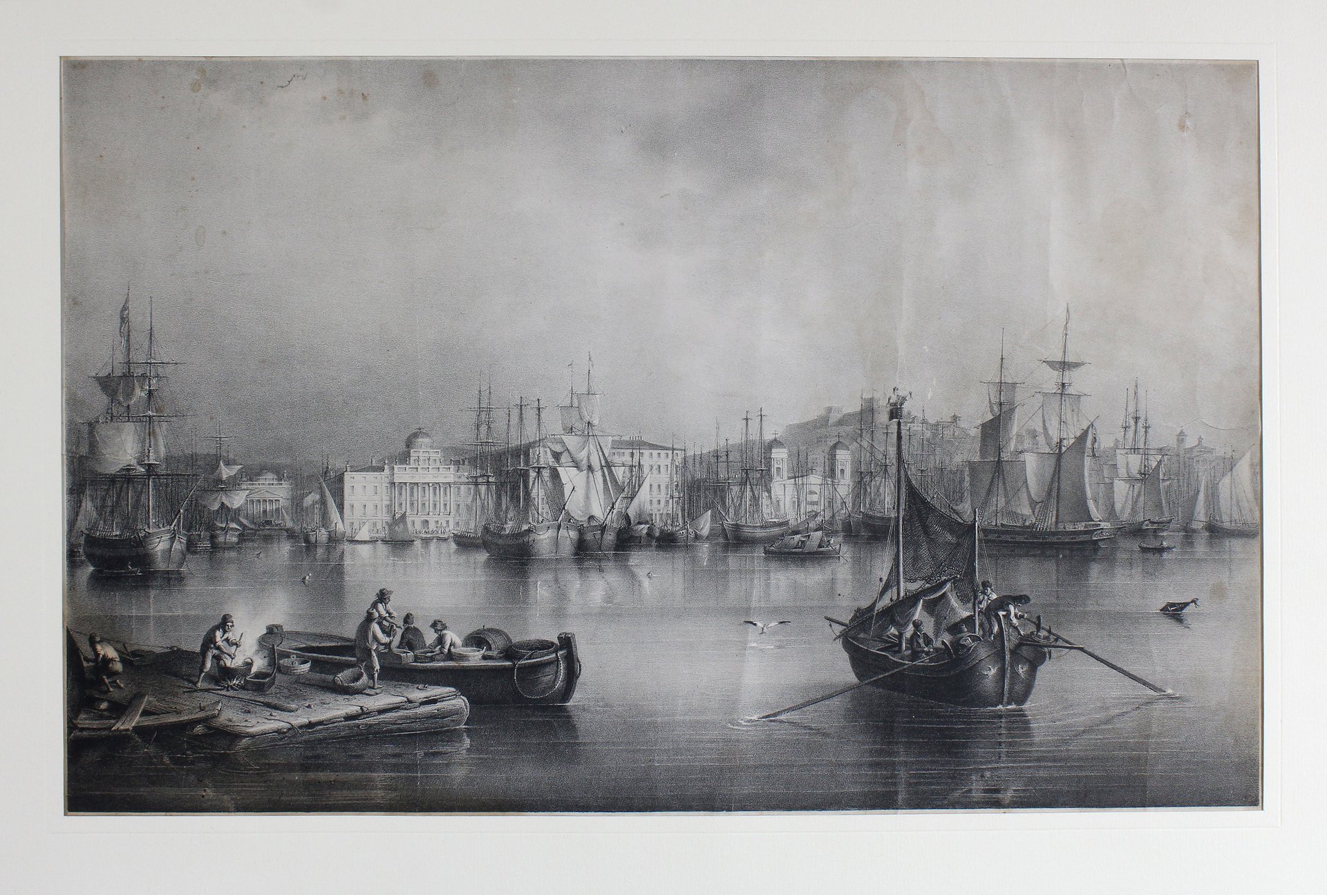 Grande veduta della riva Carciotti a Trieste eseguita dalla litografia di Bartolomeo Linassi da disegno del paesaggista tedesco August Tischbein (1805-1867).