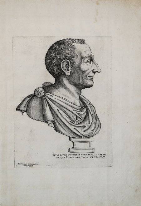 Bulino, 1550 circa, titolato e firmato in basso al centro TITVS LIVIVS PATAVINVS CVIVS INVICTO CALAMO / INVICTA ROMANORVM FACTA SCRIPTA SVNT / ANTONIUS SALAMANCA EXCUDEBAT. Sebbene priva di firma, l’opera è universalmente attribuita a Nicolas Beatrizet; figura nella lista dei lavori a lui assegnati da Bartsch, Robert-Dumesnil e Bianchi. Esemplare nel secondo stato di due descritto da Bianchi, con l’imprint di Antonio Salamanca Magnifica prova, ricca di toni, impressa su carta vergata coeva con filigrana “frecce intrecciate con stella” (cfr. Woodward nn. 193-195), con margini, in eccellente stato di conservazione. Come afferma Silvia Bianchi, non è noto il modello per questa incisione del Beatrizet, che venne replicata in controparte (probabilmente dallo stesso incisore) per i tipi di Antonio Lafreri e successivamente (1580 circa) copiata anche da Ambrogio Brambilla per l’editore Claudio Duchetti. “Esistono diverse versioni di questa incisione: la prima, della bottega di Antonio Lafréry, fu stampata nel 1572; ad essa fece seguito una riedizione a cura di Pietro De Nobili nel 1584. Un’altra, incisa da Nicolas Beatrizet, venne edita per i tipi di Antonio Salamanca, e da quella di Salamanca derivò una ristampa a cura di Fernando Bertelli nel 1586. La nostra, re-incisa da Giovanni Ambrogio Brambilla per i tipi di Claude Duchet e datata al 1582, discende dall’edizione del Lafréry” (cfr. Marigliani, ' Lo splendore di Roma nell’Arte incisoria del Cinquecento). L’opera appartiene allo ' Speculum Romanae Magnificentiae, la prima iconografia della Roma antica. ' Lo ' Speculum ' ebbe origine nelle attività editoriali di Antonio Salamanca e Antonio Lafreri (Lafrery). Durante la loro carriera editoriale romana, i due editori - che hanno lavorato insieme tra il 1553 e il 1563 - hanno avviato la produzione di stampe di architettura, statuaria e vedutistica della città legate alla Roma antica e moderna. Le stampe potevano essere acquistate individualmente da turisti e collezionisti, ma venivano anche acquistate in gruppi più grandi che erano spesso legati insieme in un album. Nel 1573, Lafreri commissionò a questo scopo un frontespizio, dove compare per la prima volta il titolo Speculum Romanae Magnificentiae. Alla morte di Lafreri, due terzi delle lastre di rame esistenti andarono alla famiglia Duchetti (Claudio e Stefano), mentre un altro terzo fu distribuito tra diversi editori. Claudio Duchetti continuò l’attività editoriale, implementando le lastre dello Speculum con copie di quelle “perdute” nella divisione ereditaria, che fece incidere al milanese Amborgio Brambilla. Alla morte di Claudio (1585) le lastre furono cedute – dopo un breve periodo di pubblicazione degli eredi, in particolare nella figura di Giacomo Gherardi - a Giovanni Orlandi, che nel 1614 vendette la sua tipografia al fiammingo Hendrick van Schoel. Stefano Duchetti, al contrario, cedette le proprie matrici all’editore Paolo Graziani, che si associò con Pietro de Nobili; il fondo confluì nella tipografia De Rossi passando per le mani di editori come Marcello Clodio, Claudio Arbotti e Giovan Battista de Cavalleris. Il restante terzo di matrici della divisione Lafreri fu suddiviso e scisso tra diversi editori, in parte anche francesi: curioso vedere come alcune tavole vengano ristampate a Parigi da Francois Jollain alla metà del XVII secolo. Diverso percorso ebbero alcune lastre stampate da Antonio Salamanca nel suo primo periodo; attraverso il figlio Francesco, confluirono nella tipografia romana di Nicolas van Aelst. Altri editori che contribuirono allo Speculum furono i fratelli Michele e Francesco Tramezzino (autori di numerose lastre che confluirono in parte nella tipografia Lafreri), Tommaso Barlacchi, e Mario Cartaro, che fu l’esecutore testamentario del Lafreri, e stampò alcune lastre di derivazione. Per l’intaglio dei rami vennero chiamati a Roma e impiegati tutti i migliori incisori dell’epoca quali Nicol. Engraving, c. 1550, titled and signed at lower center TITVS LIVIVS PATAVINVS CVIVS INVICTO CALAMO / INVICTA ROMANORVM FACTA SCRIPTA SVNT / ANTONIUS SALAMANCA EXCUDEBAT. Although unsigned, the work is universally attributed to Nicolas Beatrizet; it appears in the list of works assigned to him by Bartsch, Robert-Dumesnil and Bianchi. Example in the second state of two described by Bianchi, with the imprint by Antonio Salamanca. Magnificent proof, rich in tone, printed on contemporary laid paper with watermark "arrows intertwined with star" (see Woodward nos. 193-195), with margins, in excellent condition. As Silvia Bianchi states, there is no known model for this engraving by Beatrizet, which was replicated in counterpart (probably by the same engraver) for Antonio Lafreri and later (c. 1580) also copied by Ambrogio Brambilla for the publisher Claudio Duchetti. “Several versions of this engraving exist: the first, from the workshop of Antonio Lafréry, was printed in 1572; it was followed by a reissue by Pietro De Nobili in 1584. Another, engraved by Nicolas Beatrizet, was published by Antonio Salamanca, and from that of Salamanca derived a reprint by Fernando Bertelli in 1586” (translation from C. Marigliani, ' Lo splendore di Roma nell’Arte incisoria del Cinquecento). The work belongs to the Speculum Romanae Magnificentiae, the earliest iconography of ancient Rome. The Speculum originated in the publishing activities of Antonio Salamanca and Antonio Lafreri (Lafrery). During their Roman publishing careers, the two editors-who worked together between 1553 and 1563-started the production of prints of architecture, statuary, and city views related to ancient and modern Rome. The prints could be purchased individually by tourists and collectors, but they were also purchased in larger groups that were often bound together in an album. In 1573, Lafreri commissioned a frontispiece for this purpose, where the title Speculum Romanae Magnificentiae appears for the first time.
