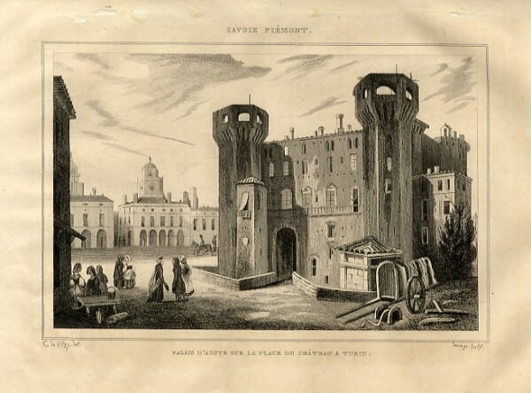 TORINO - "Palais d'Aoste sur la Place du Chateau a Turin" animato scorcio cittadino.