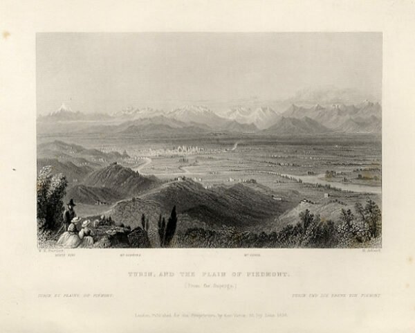 TORINO - "Turin, and the plain of Piedmont (from Superga)" bella veduta panoramica con le alpi sullo sfondo.