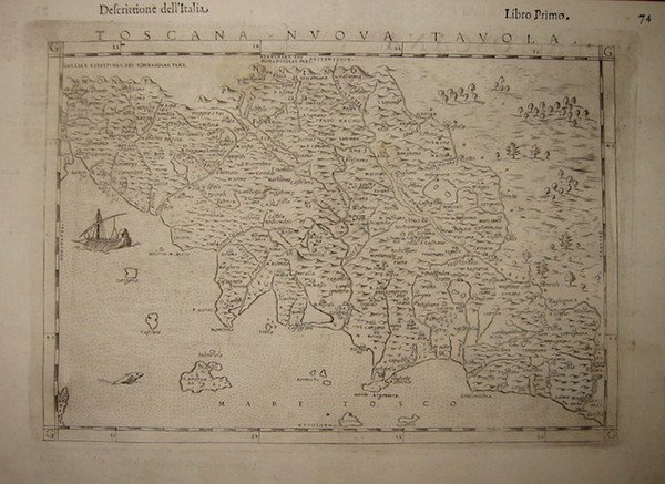 Carta geografica originale (cm. 26,5x18,5 più ampi margini bianchi) tratta dalla ‘Geografia di Claudio Tolomeo alessandrino.’ pubblicata da Girolamo Ruscelli. Due minuscoli forellini di tarlo nella parte incisa, ma esemplare in ottimo stato di conservazione. Non comune.