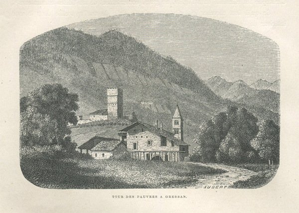 Veduta della Torre dei Poveri a Gressan in Val d' Aosta