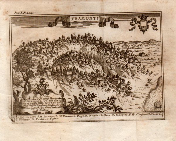 Incisione all'acquaforte, f. 14x18 cm. ca. In: PACICHELLI, Giovanni Battista - "Il Regno di Napoli in prospettiva", Napoli, Stamperia Luigi Mutio