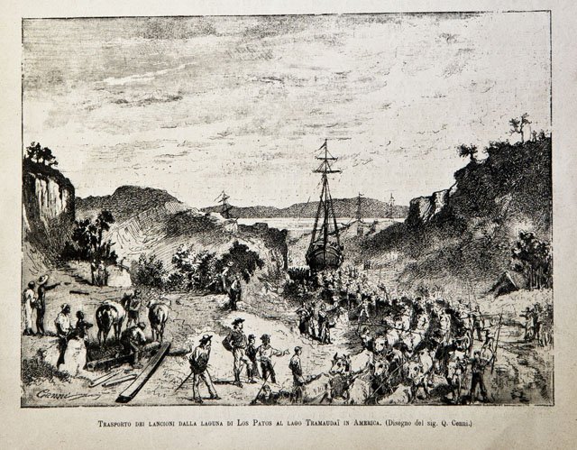 Trasporto dei lancioni dalla laguna di Los Patos al Lago Tramaudai in America