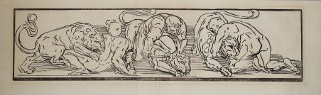 Silografia stampata in bruno, 1763, firmata e datata in tavola in basso a destra.Da un disegno di Luca Cambiaso, prima nella collezione Fawkener (come indicato nell'opera in basso al centro), ora al British Museum.Magnifica prova, impressa su due grandi fogli di carta vergata coeva, con margini, in perfetto stato di conservazione.L'opera è parte della raccolta di Charles Rogers, 'A Collection of Prints in Imitation of Drawings. To which are annexed lives of their authors', edita a Londra da John Boydell e altri nel 1778. Le tavole che sono contenute nell'opera riproducono a grandezza naturale e con gli stessi colori, una serie di disegni antichi nella collezione del Rogers. Woodcut printed in brown, 1763, signed at lower right.After a drawing by Luca Cambiaso, at that time in the Fawkener's collection and now at the British Museum.A fine impression, printed on two large sheet of contemporary laid paper, with margins, perfect condition.The work is part of Charles Rogers, 'A Collection of Prints in Imitation of Drawings. To which are annexed lives of their authors'. London: printed by J. Nichols, and sold by John Boydell, Benjamin White, and Peter Molini, 1778.The plates, which use a wide variety of techniques, show some old master drawings in Rogers's own collection. His preface states: 'That these prints may be faithful imitations, they are engraved the same way as, as well as the same size, as the Originals are drawn; and printed, as nearly as possible, in the same colours' Cfr.