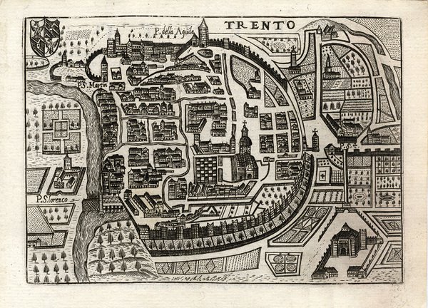 TRENTO - "Trento". Veduta generale della città e dei dintorni, molto nitida e dettagliata.
