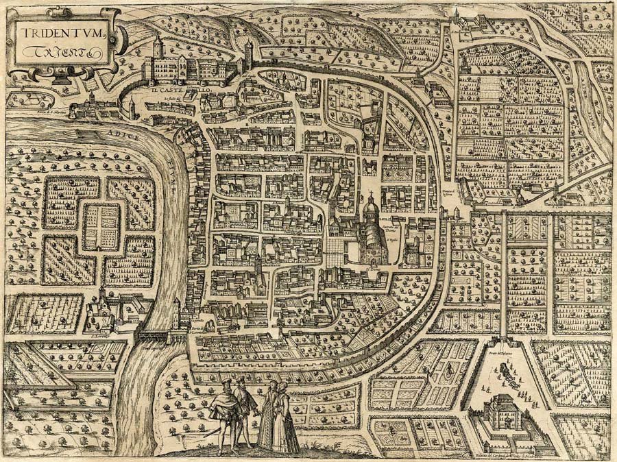Incisione su rame di dimensioni 343x457 mm. Condizioni : USATO - Stato : Buono, ordinari segni d'uso e del tempo. Altre note : Pianta prospettica da ovest raffigurante la città di Trento. In primo piano quattro personaggi in costume d'epoca. Da notare l'irregolarità del rame presente anche in altre incisioni contenute nella stessa raccolta "Civitates orbis terrarum" di Georg Braun, Franz Hogenberg e Simon van den Neuvel. Titolo in alto a sx. entro cornice. Al verso descrizione della città in latino. Scheda bibliografica tratta da "Imago tridenti: incisioni e libri illustrati dal XV al XVIII secolo" di Franco Cappelletti, scheda n. 13a pag. 51.