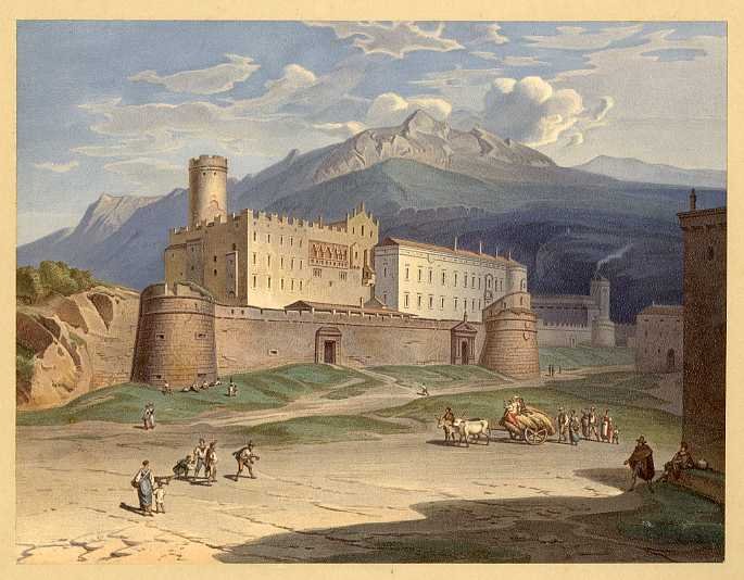 Cromolitografia applicata su cartoncino di cm 33x26. Condizioni : USATO - Stato : Buono, ordinari segni d'uso e del tempo. Altre note : Scheda bibliografica tratta da Wikipedia. Rottmann was born in Handschuhsheim (today a part of Heidelberg) on 11 January 1797. There he received his first drawing lessons from his father, Friedrich Rottmann, who taught drawing at the university in Heidelberg. He formed himself chiefly through the study of nature and of great masterworks. In his first artistic period, he painted atmospheric phenomena. After gaining prominence with Heidelberg at Sunset (a water color), and Castle Eltz, he settled in Munich in 1822 and devoted himself to Bavarian scenery. Here his second period began, and in 1824 he married Friedericke, the daughter of his uncle, Friedrich Ludwig von Sckell, who served as an attendant at court."<br>Through this connection, he made the acquaintance of King Ludwig I of Bavaria, who in 1826/27 sponsored his travels in Italy in order to widen his repertoire, which up to that point consisted solely of domestic, German, landscapes. In Italy, Rottmann made sketches for the 28 Italian landscapes in fresco which he was commissioned to paint in the arcades of the Hofgarten at Munich. The cycle, completed in 1833, gave visual expression to Ludwig's alliance with Italy, and raised the genre of landscape painting to the height of history painting, the preferred mode of the King's other great commissions for monumental painting. The frescos unfortunately deteriorated under climatic influences. The cartoons for them are in the Darmstadt Gallery."<br>In 1834 Rottmann traveled to Greece to prepare for a commission from Ludwig for a second cycle; one might mark here the beginning of his third period. At first also intended for the Hofgarten arcade, the 23 great landscapes were eventually installed in the newly-built Neue Pinakothek where they were given their own hall."<br>Of his easel pictures, Ammer Lake and Marathon are in the National Gallery, Berlin; The Acropolis of Sikyon and Corfu in the Pinakothek, Munich; others in the Schack Gallery, Munich, and in Karlsruhe; and seven in the Leipzig Museum."<br>Carl Rottmann died on 7 July 1850 in Munich, aged 53 of undisclosed causes. He is buried in the Alter Südfriedhof in Munich.