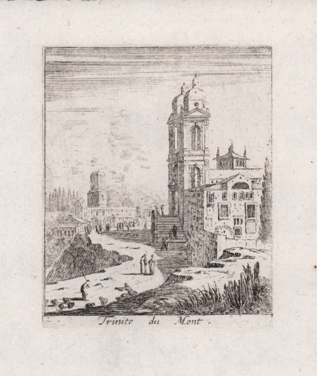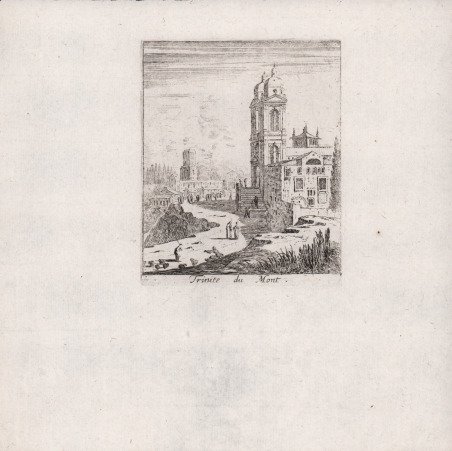 Veduta tratta dalla serie ' Divers veuës d'Italie et autre lieu. Fait par Israël Silvestre. “Suite de 21 pièces sans le titre. Sans numéros.”. (cfr. Faucheux, Catalogue raisonné de toutes les estampes qui forment l'oeuvre d'Israel Silvestre). Il Silvestre, incisore e disegnatore, nasce a Nancy nel 1621. Come era consuetudine all'epoca, fece diversi viaggi in Italia per copiare i vecchi maestri e per migliorare le sue abilità con i più grandi maestri. Faucheux fissa le date di questi viaggi, il primo prima del 1640 (Israel non aveva ancora 20 anni), il secondo dal 1643 al 1644 e l'ultimo intorno al 1653. Israel portò con sé molte vedute dell'Italia, quasi tutte incise. Fino al 1659, fece altri viaggi in Francia e in Lorena, da cui trasse molti disegni e incisioni. Il suo stile fu, all'inizio, piuttosto sciolto, ma dal 1643 in poi divenne più raffinato e delicato, acquisendo accuratezza e precisione senza essere asciutto, risultando a volte simile a quello di Jacques Callot o di Stefano della Bella, con i quali ebbe rapporti di amicizia attraverso il suo zio materno e mentore, l’editore Israël Henriet. Accanto alle testimonianze per la Roma antica mostrò ben presto un grandissimo interesse per la città "moderna", divenendo uno dei precursori del vedutismo - non solo nel campo incisorio - anticipando artisti come Lievin Cruyl e Gaspar van Wittel. È praticamente impossibile fare un inventario completo delle opere di Israël Silvestre, tanto era prolifico l'artista. Ha lasciato numerosi disegni e più di mille incisioni. Tra le sue opere più belle, possiamo tuttavia menzionare le numerose e complesse “piccole” suite (composte da poche tavole) sulle piazze, le chiese e le antichità di Roma. Acquaforte, in ottimo stato di conservazione. Bibliografia L. E. Faucheux, Catalogue raisonné de toutes les estampes qui forment l'oeuvre d'Israel Silvestre: précédé d'une notice sur sa vie (1857), n. 19.21; F. Baré, Israël Silvestre et sa famille, suivi du catalogue de son oeuvre (1885), n. 941. View taken from the series ' Divers veuës d'Italie et autre lieu. Fait par Israël Silvestre. “Suite de 21 pièces sans le titre. Sans numéros.”. (cfr. Faucheux, Catalogue raisonné de toutes les estampes qui forment l'oeuvre d'Israel Silvestre). Silvestre, engraver and draftsman, was born in Nancy in 1621. As was customary at the time, he made several trips to Italy to copy the old masters and to improve his skills with the greatest masters. Faucheux fixes the dates of these trips, the first before 1640 (Israel was not yet 20 years old), the second from 1643 to 1644 and the last around 1653. Israel brought with him many views of Italy, almost all of them engraved. Until 1659, he made other trips to France and Lorraine, from which he took many drawings and engravings. His style was, at the beginning, rather loose, but from 1643 onwards became more refined and delicate, acquiring accuracy and precision without being dry, resulting sometimes similar to that of Jacques Callot or Stefano della Bella, with whom he had friendly relations through his maternal uncle and mentor, the publisher Israël Henriet. Alongside the testimonies to ancient Rome, he soon showed great interest in the "modern" city, becoming one of the precursors of vedutism - not only in the field of engraving - anticipating artists such as Lievin Cruyl and Gaspar van Wittel. It is quite impossible here to make a complete inventory of Israël Silvestre's works, so prolific was the artist. He left numerous drawings and more than a thousand engravings. However, among his most beautiful works, we can mention the many complex "small" suites (composed of a few plates) on the squares, churches and antiquities of Rome. Etching, in excellent condition. Bibliografia L. E. Faucheux, Catalogue raisonné de toutes les estampes qui forment l'oeuvre d'Israel Silvestre: précédé d'une notice sur sa vie (1857), n. 19.21; F. Baré, Israël Silvestre et sa famille, suivi du catalogue de son oeuvre (1885), n. 941. Cfr.