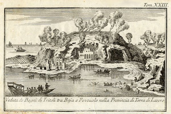 TRITOLI - "Veduta de Bagni di Tritoli tra Baja e Pozzuolo nella Provincia di Terra di Lavoro." Veduta prospettica.