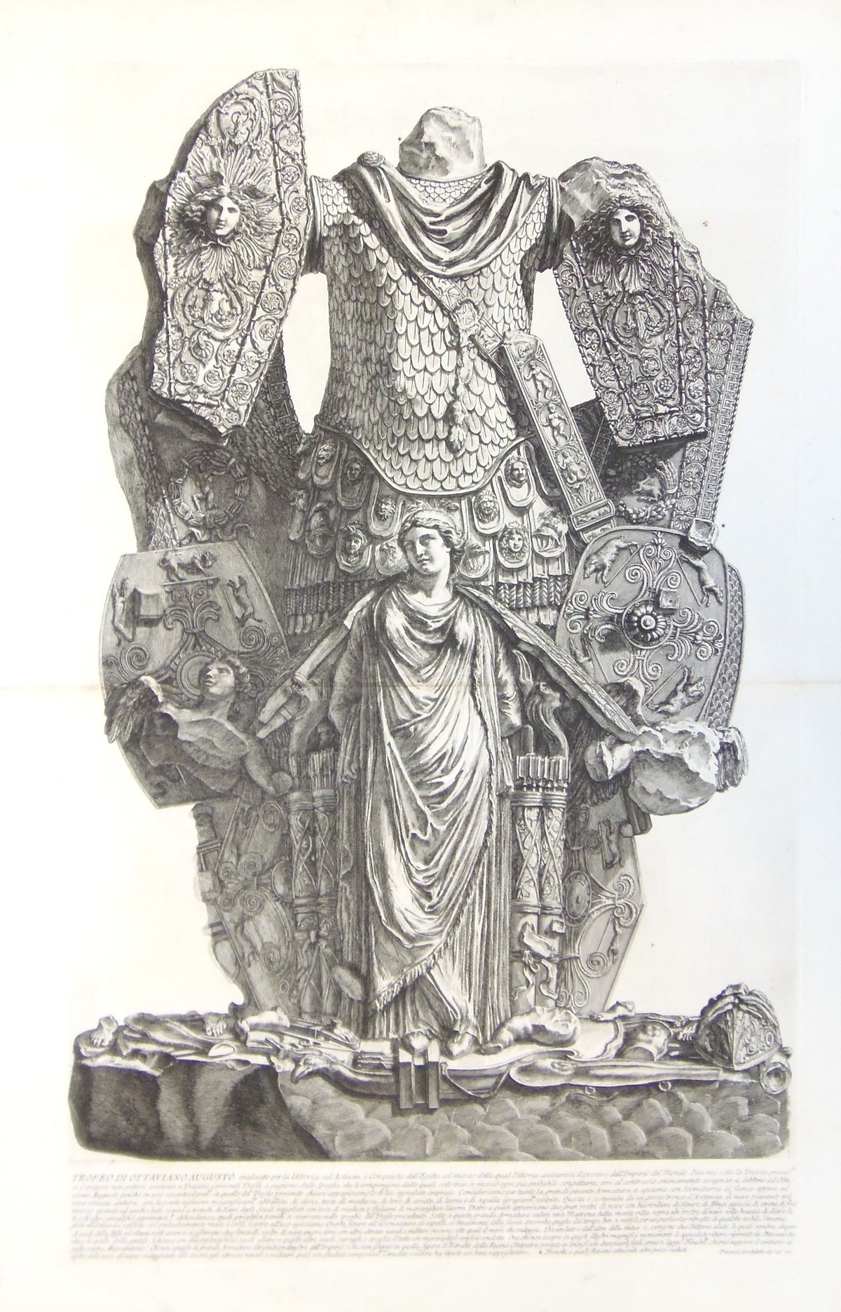 Acquaforte, bulino e puntasecca da " Trofei di Ottaviano Augusto ", stampato nel 1753. Bella prova con ampi margini, impressa su carta vergata senza filigrana, traccia di piega centrale, lievi fioriture ai margini, ben conservata. Mm: 595x396. Focillon 136.<BR>