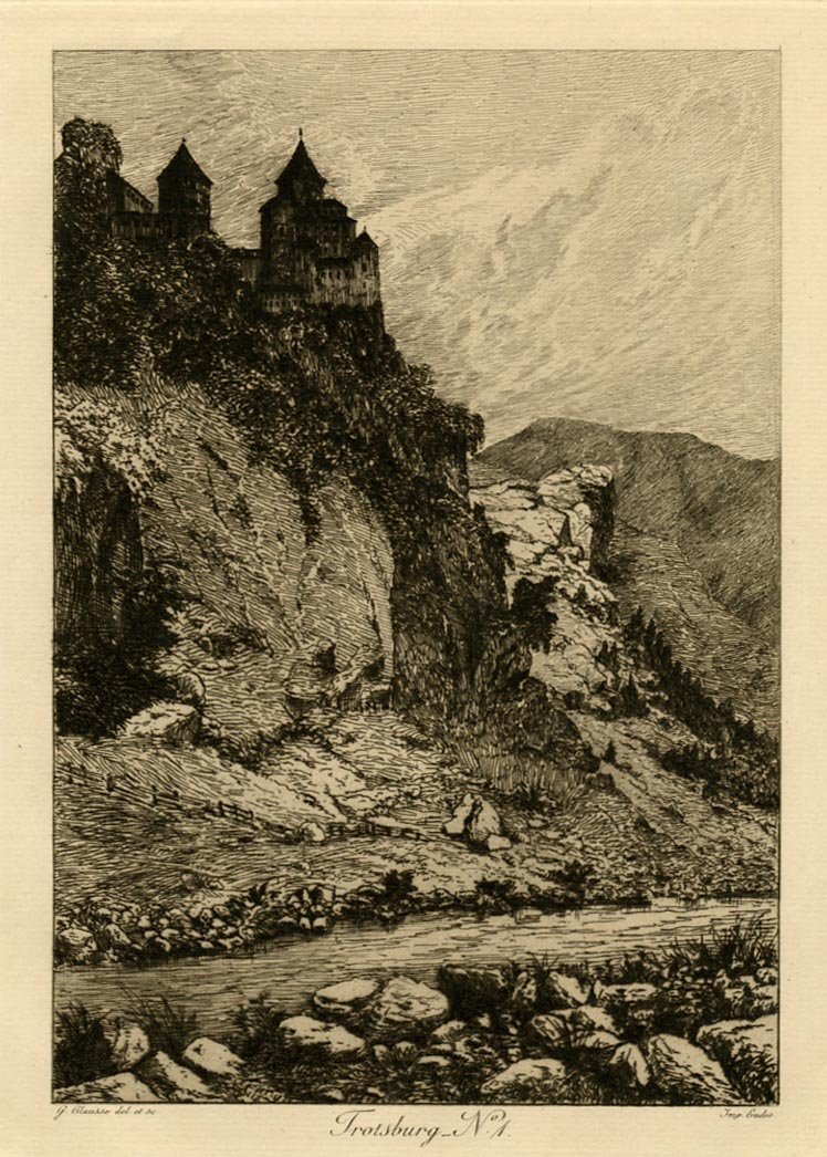Acquaforte di dimensioni cm 16x25 su foglio di misure 32x45 cm. Condizioni : USATO - Stato : Buono, ordinari segni d'uso e del tempo. Altre note : Veduta raffigurante il castello di Trostburg (noto anche come Castel Forte), presso Ponte Gardena. Menzionato per la prima volta nel 1173, per secoli proprietà dei conti Wolkenstein, Trostburg è oggi sede del Museo dei Castelli dell'Alto Adige. La stampa qui proposta ne offre una suggestiva visione a picco sull'Isarco. La veduta è contenuta nell'album "Le Tyrol: Souvenirs." che contiene 18 tavole all'acquaforte su carta pesante ciascuna pretetta da velina. Le località rappresentate sono le seguenti: Ladeck, Gorges de Hochfinstermuntz, Citadelle de Kufstein, Schiemsee, Inspruck (2 diverse), Chateau d'Ambras, Toblachersee, Cortino d'Ampezzo, Trotsburg (2 diverse), Sigmunds-kron, Terlan, Zenoburg, Schloss-Tyrol, Forst-Burg, Trente. Clausse nasce il 25 novembre 1833 a Parigi e muore il 18 luglio 1914 a Clairefontaine (Calvados). Allievo di Lebas presso la Scuola di Belle Arti, esposto al Salon dal 1848, in particolare acquerelli (vedute di castelli in Francia, vedute d'Italia, tra cui Genova, Venezia e Como, vedute di Normandia e Touraine ). Durante la sua carriera, fu l'ispettore della città di Parigi, amministratore della Compagnia assicurativa nazionale, vicepresidente della Cassa di Risparmio. Ha progettato diverse opere private: hotel, castelli, cimitero di Méry-sur-Oise, cappella del maniero di Clairefontaine (1890). A Parigi visse al 9 di rue Murillo, in un edificio-albergo costruito da lui stesso dal 1870 (affittato ai piani superiori); nel cortile, aveva messo insieme un porticato e capitelli raccolti da Edmond Guillaume, l'architetto incaricato della demolizione del Palazzo delle Tuileries, e la decorazione interna dell'hotel era notevole.