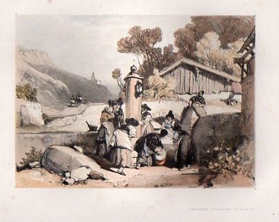 Litografia di dimensioni 127x177 mm (parte incisa). Condizioni : USATO - Stato : Buono, ordinari segni d'uso e del tempo, tracce di foxing. Altre note : Bella veduta a colori di un tipico paesaggio Tirolese, nel primo piano invece animazione di viaggiatori. Si trova in: "Harding's sketches at home and abroad. Tilt, London. 1836". Nella parte inferiore informazioni sull'autore.