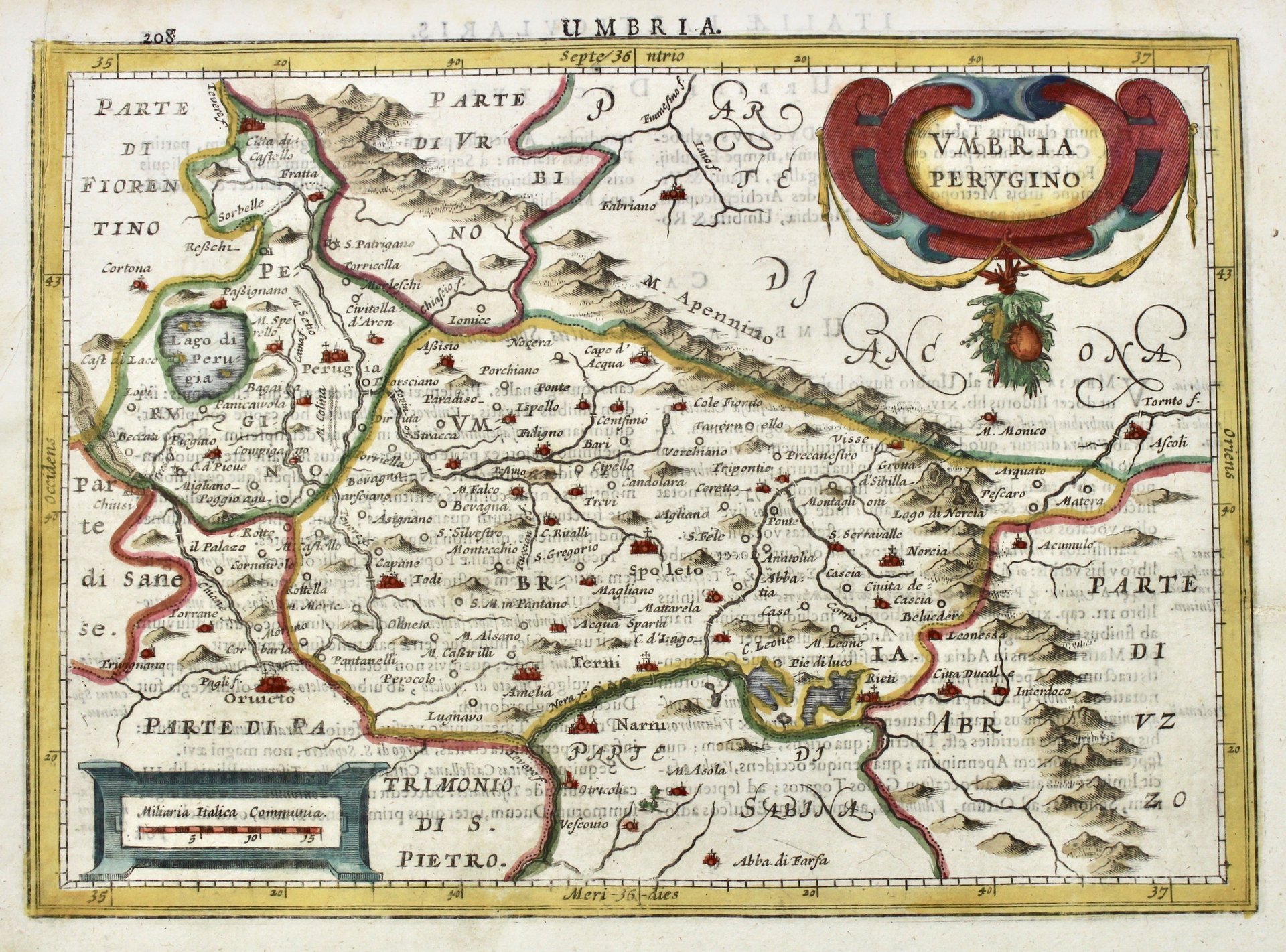 Incisione in rame, mm 180x250. Tratta da "Nova et accurata Italiae hodiernae descriptio". Piacevole carta geografica di medio formato raffigurante i territori delle due provincie compresi fra Cittadella e il lago. Jodocus Hondius, latinizzazione dall'olandese di Joost de Hondt (1563-1612) fu pittore, incisore e cartografo fiammingo. La sua attività, continuata dall'omonimo figlio, contribuì a fare di Amsterdam il centro della cartografia europea del XVII secolo. Bell'esemplare con un impercettibile alone in basso a sinistra.<BR>