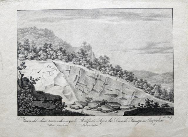 Unione del calcare saccaroide con quello stratificato sopra la buca di Fucinaja nel Campigliese.