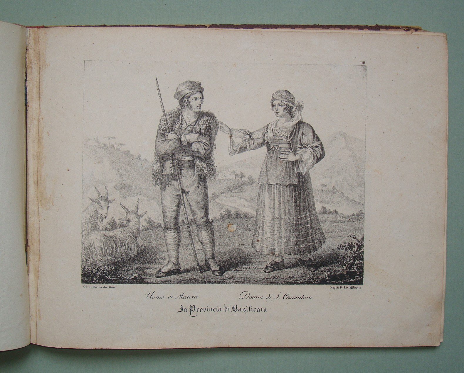 FORINO. Uomo di Matera Donna di San Costantino (Basilicata). 1824. Cm.15x20. Litografia militare.