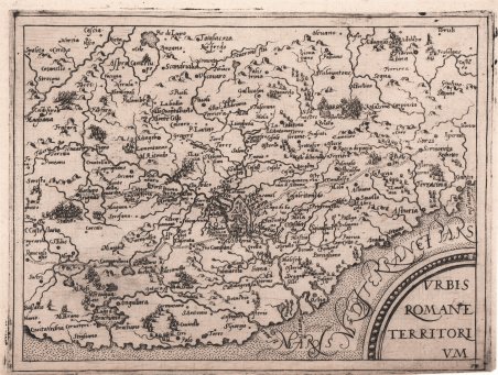 Carta geografica tratta dal rarissimo ' Itinerarium Europae Provinciae ' edito a Colonia tra il 1579 e il 1588. Esemplare di secondo stato, con il numero 79 aggiunto in basso a destra. Basata sulla carta del Lazio pubblicata da Abraham Ortelius nel Theatrum Orbis Terrarum del 1570, a sua volta una riduzione della Campagna di Roma di Eufrosino della Volpaia (1547). Conosciuto anche come ' Itinerarium Orbis Christiani, ' questo atlante fu pubblicato anonimamente a causa dei problemi politici e religiosi che caratterizzavano il periodo storico, come spesso succedeva all'epoca per sfuggire alle persecuzioni cattoliche contro i protestanti. L'opera fa parte degli atlanti editi dalla cosiddetta Scuola Cartografica di Colonia, durata per circa mezzo secolo (1570-1610 ca.), e formata principalmente da rifugiati fiamminghi e olandesi tra i quali spiccano lo stesso Matthaeus Quad e Frans Hogenberg, che ne fu il fondatore. Le mappe sono attribuite alcune a Jan Matal ed altre a Michael von Eitzing. Jan Matal o Metellus, francese di nascita ed attivo a Louvaine ed a Colonia, dove si rifugia proprio per sfuggire alle persecuzioni dei regnanti cattolici e dove muore nel 1597. Fu tra i maggiori cartografi del tempo e, insieme al Quad e al Hogenberg stesso, il principale esponente della scuola coloniese. Alcune delle mappe del Matal sono poi successivamente incluse nelle successive pubblicazioni postume, e recano il testo al verso. Dal punto di vista cartografico le mappe sono una derivazione e basate sulle carte pubblicate ad Anversa da Abraham Ortelius, per la prima volta nel 1570; le incisioni delle mappe sono invece attribuite a Frans Hogenberg. La grandissima rarità dell'opera, insieme alla scarsità di informazioni sulle opere "carbonare" edite a Colonia, contribuisce al fascino di questa importante mappa, caposaldo di ogni collezione cartografica. Ogni raccolta risulta diversa dall’altra, come ampiamente documentato nel saggio di Peter H. Meurer, ' Atlantes Colonienses, Die Kolner Schule der Atlaskartographie 1570-1610. ' Incisione in rame, ' in ottimo stato di conservazione. Opera di incredibile rarità. Bibliografia Peter H. Meurer, ' Atlantes Colonienses, Die Kolner Schule der Atlaskartographie 1570-1610, ' pp. 138-139, IOC 8, n. 74. Map taken from the very rare ' Itinerarium Europae Provinciae ' published in Cologne between 1579 and 1588. Second ' state example, with the number 79 at lower right. Based on the map of Latium published by Abraham Ortelius in the 1570 ' Theatrum Orbis Terrarum, itself a reduction of Eufrosino della Volpaia's ' Campagna di Roma ' (1547). Also known as ' Itinerarium Orbis Christiani, ' this atlas was published anonymously because of the political and religious problems that characterized the historical period, as was often the case at the time to escape Catholic persecution against Protestants. The work is part of the atlases published by the so-called Cartographic School of Cologne, which lasted for about half a century (c. 1570-1610), and consisted mainly of Flemish and Dutch refugees, among them Matthaeus Quad himself and Frans Hogenberg, who was its founder. The maps are attributed some to Jan Matal and others to Michael von Eitzing. Jan Matal or Metellus, French by birth and active in Louvaine and Cologne, where he took refuge precisely to escape persecution by Catholic rulers and where he died in 1597. He was among the leading cartographers of the time and, along with Quad and Hogenberg himself, the leading exponent of the Cologne school. Some of Matal's maps are later included in later posthumous publications and bear the text on the verso. Cartographically, the maps are a derivation of and based on maps first published in Antwerp by Abraham Ortelius in 1570; the engravings of the maps, however, are attributed to Frans Hogenberg. The great rarity of the works published in Cologne, contributes to the appeal of this important map, a cornerstone of every cartographic collection. Each Atlas turns out to be different from the other, as extensively documented in Peter H. Meurer's essay, ' Atlantes Colonienses, Die Kolner Schule der Atlaskartographie 1570-1610. ' Copperplate engraving, ' very good condition. Bibliografia Peter H. Meurer, ' Atlantes Colonienses, Die Kolner Schule der Atlaskartographie 1570-1610, ' pp. 138-139, IOC 8. Cfr.