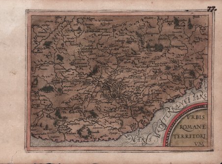 Carta geografica tratta dal rarissimo ' Itinerarium Europae Provinciae ' edito a Colonia tra il 1579 e il 1588. Esemplare di primo stato, avanti il numero. Basata sulla carta del Lazio pubblicata da Abraham Ortelius nel Theatrum Orbis Terrarum del 1570, a sua volta una riduzione della Campagna di Roma di Eufrosino della Volpaia (1547). Conosciuto anche come ' Itinerarium Orbis Christiani, ' questo atlante fu pubblicato anonimamente a causa dei problemi politici e religiosi che caratterizzavano il periodo storico, come spesso succedeva all'epoca per sfuggire alle persecuzioni cattoliche contro i protestanti. L'opera fa parte degli atlanti editi dalla cosiddetta Scuola Cartografica di Colonia, durata per circa mezzo secolo (1570-1610 ca.), e formata principalmente da rifugiati fiamminghi e olandesi tra i quali spiccano lo stesso Matthaeus Quad e Frans Hogenberg, che ne fu il fondatore. Le mappe sono attribuite alcune a Jan Matal ed altre a Michael von Eitzing. Jan Matal o Metellus, francese di nascita ed attivo a Louvaine ed a Colonia, dove si rifugia proprio per sfuggire alle persecuzioni dei regnanti cattolici e dove muore nel 1597. Fu tra i maggiori cartografi del tempo e, insieme al Quad e al Hogenberg stesso, il principale esponente della scuola coloniese. Alcune delle mappe del Matal sono poi successivamente incluse nelle successive pubblicazioni postume, e recano il testo al verso. Dal punto di vista cartografico le mappe sono una derivazione e basate sulle carte pubblicate ad Anversa da Abraham Ortelius, per la prima volta nel 1570; le incisioni delle mappe sono invece attribuite a Frans Hogenberg. La grandissima rarità dell'opera, insieme alla scarsità di informazioni sulle opere "carbonare" edite a Colonia, contribuisce al fascino di questa importante mappa, caposaldo di ogni collezione cartografica. Ogni raccolta risulta diversa dall’altra, come ampiamente documentato nel saggio di Peter H. Meurer, ' Atlantes Colonienses, Die Kolner Schule der Atlaskartographie 1570-1610. ' Il nostro esemplare corrisponde alla raccolta descritta come IOC 8. Incisione in rame, magnifica coloritura coeva, in buono stato di conservazione. Opera di incredibile rarità. Bibliografia Peter H. Meurer, ' Atlantes Colonienses, Die Kolner Schule der Atlaskartographie 1570-1610, ' pp. 138-139, IOC 8, n. 74. ' Map taken from the very rare ' Itinerarium Europae Provinciae ' published in Cologne between 1579 and 1588. First state example, before the number. Based on the map of Latium published by Abraham Ortelius in the 1570 Theatrum Orbis Terrarum, itself a reduction of Eufrosino della Volpaia's Campagna di Roma (1547). Also known as ' Itinerarium Orbis Christiani, ' this atlas was published anonymously because of the political and religious problems that characterized the historical period, as was often the case at the time to escape Catholic persecution against Protestants. The work is part of the atlases published by the so-called Cartographic School of Cologne, which lasted for about half a century (c. 1570-1610), and consisted mainly of Flemish and Dutch refugees, among them Matthaeus Quad himself and Frans Hogenberg, who was its founder. The maps are attributed some to Jan Matal and others to Michael von Eitzing. Jan Matal or Metellus, French by birth and active in Louvaine and Cologne, where he took refuge precisely to escape persecution by Catholic rulers and where he died in 1597. He was among the leading cartographers of the time and, along with Quad and Hogenberg himself, the leading exponent of the Cologne school. Some of Matal's maps are later included in later posthumous publications and bear the text on the verso. Cartographically, the maps are a derivation of and based on maps first published in Antwerp by Abraham Ortelius in 1570; the engravings of the maps, however, are attributed to Frans Hogenberg. The great rarity of the works published in Cologne, contributes to the appeal of this important map, a cornerstone of every cartographic collection. Each Atlas turns out to be different from the other, as extensively documented in Peter H. Meurer's essay, ' Atlantes Colonienses, Die Kolner Schule der Atlaskartographie 1570-1610. Our example corresponds to the collection described as IOC 8. Copperplate engraving, magnificent contemporary coloring, in good condition. Bibliografia Peter H. Meurer, ' Atlantes Colonienses, Die Kolner Schule der Atlaskartographie 1570-1610, ' pp. 138-139, IOC 8. ' Cfr.