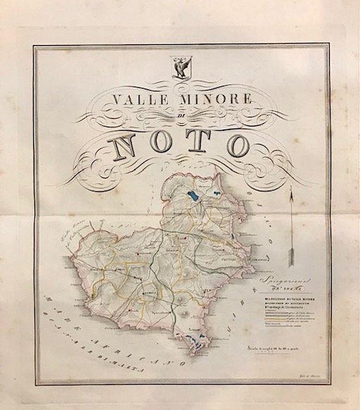 Carta geografica originale (cm. 36x41,5 più ampi margini bianchi) tratta da ‘Atlante Corografico del Regno delle due Sicilie’. Coloritura d’epoca dei contorni. Esemplare in ottimo stato di conservazione. Non comune.