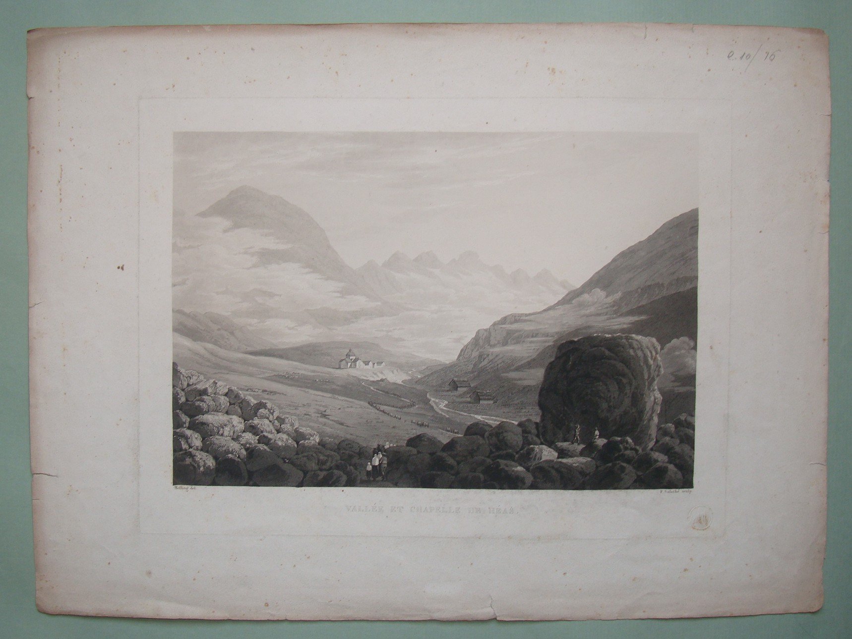 SALATHE’. Vallee et chapelle de Heas. 1835 ca. Cm.28x36. Incisione all’acquatinta di Melling.