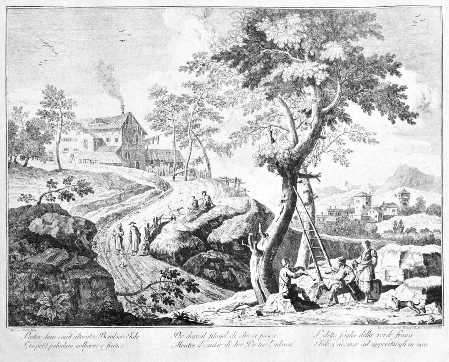 VEDUTA CAMPESTRE. - (Riproduzione di stampa d'epoca).