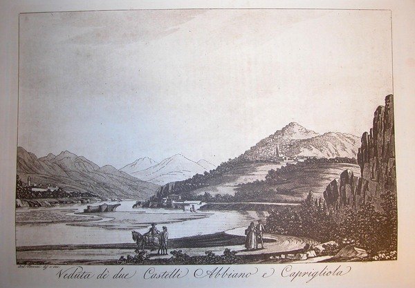 VEDUTA DE' DUE CASTELLI D'ALBIANO E CAPRIGLIOLA. Riproduzione tratta da "Viaggio pittorico della Toscana" di Jacopo e Antonio Terreni.
