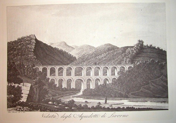 VEDUTA DEGLI ACQUEDOTTI DI LIVORNO. Riproduzione tratta da "Viaggio pittorico della Toscana" di Jacopo e Antonio Terreni.