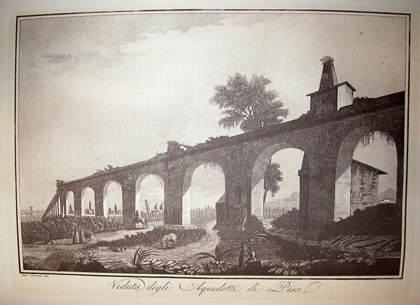 VEDUTA DEGLI ACQUEDOTTI DI PISA. Riproduzione tratta da "Viaggio pittorico della Toscana" di Jacopo e Antonio Terreni.