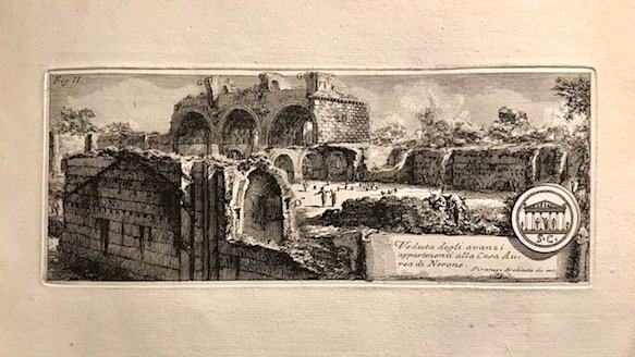 Acquaforte originale da ‘Le Antichità Romane’ (cm. 27x10,8 più ampi margini bianchi) impressa su carta vergellata con filigrana. Esemplare in ottimo stato di conservazione. Focillon p. 23, n. 208; Wilton-Ely p. 393, n. 343.