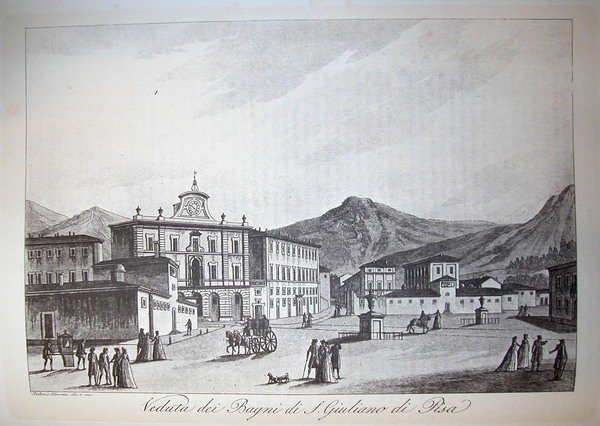 VEDUTA DEI BAGNI DI S.GIULIANO DI PISA. Riproduzione tratta da "Viaggio pittorico della Toscana" di Jacopo e Antonio Terreni.