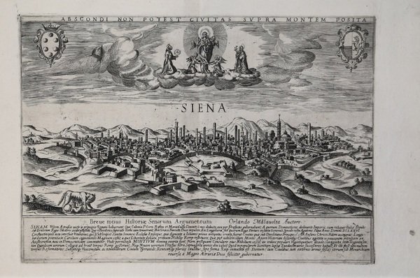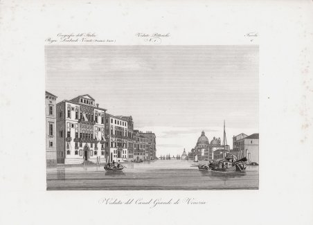 Veduta pubblicata nel noto Atlante illustrativo, ossia Raccolta dei principali monumenti italiani antichi, del Medio evo e moderni, e di alcune vedute pittoriche⦠di Attilio Zuccagni-Orlandini, edito in 3 tomi nel 1845 a Firenze, per servire di corredo alla Corografia fisica, storica e statistica dell'Italiaâ¦, opera in 12 volumi, pubblicati dal 1837 al 1845, corredata - oltre che dall'Atlante illustrativo sopra descritto - anche da un Atlante geografico degli Stati italiani, in due tomi. Attilio Zuccagni Orlandini (1784-1872) nacque a Fiesole con il nome di Giuseppe Orlandini. In seguito allâadozione da parte del facoltoso zio materno Attilio Zuccagni (1754-1807), botanico e georgofilo, assunse il nome di Attilio Zuccagni Orlandini. La sua più importante opera è la relazione geografico-cartografica di tutti gli Stati preunitari italiani, la grandiosa Corografia fisica, storica e statistica dellâItalia e delle sue Isole (Firenze 1835-1845), in dodici volumi per diciannove tomi, con un volume introduttivo sullâintera penisola italiana. Lâopera costituì la summa delle centinaia di opere geografiche generali, regionali e locali allora disponibili e presentava, per ogni Stato preunitario, la trattazione fisica, storica, topografica e un inquadramento statistico. Nel 1844-45, la Corografia fu arricchita con cinque volumi di cartografie, vedute e altre illustrazioni di luoghi e monumenti: Atlante geografico degli Stati italiani delineato sopra le migliori e più moderne mappe (due volumi con 144 tavole inclusa la grande carta della penisola in 15 fogli) e Atlante illustrativo ossia raccolta dei principali monumenti italiani antichi, del medio evo e moderni e di alcune vedute pittoriche (tre volumi con 413 illustrazioni, stampate su 269 fogli). Le tavole furono incise, sempre a Firenze, in due apposite officine, da quattro valenti artisti lombardi (Vittorio Angeli, Giacinto Maina, Pietro Manzoni e Giuseppe Pozzi). Soprattutto il primo dei due atlanti rappresenta, ancora oggi, una pietra miliare nella storia della cartografia e dellâiconografia geografica italiana. Fu veramente âunâardua impresaâ, dal momento che spesso mancavano ancora (come, ad esempio, per il Ducato di Lucca e lo Stato Pontificio) prodotti cartografici compiutamente geometrici. I due prodotti furono presentati ai Georgofili nel 1843 e nel 1844, insieme alla mappa della Repubblica di San Marino. Lâopera si rivelò oltremodo costosa e non ottenne il successo commerciale sperato, ma servì da base per tante altre iniziative editoriali successive che vi attinsero, talora senza neppure rispettarne i diritti dâautore. Incisione su rame all'acquaforte, in ottimo stato di conservazione. Bibliografia: Anna Guarducci - Dizionario Biografico degli Italiani - Volume 100 (2020).