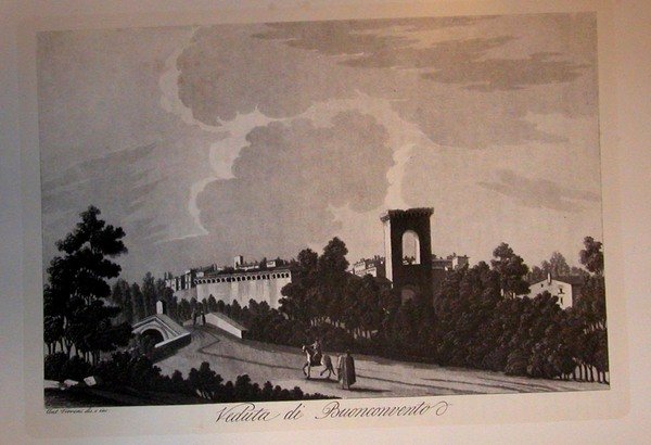 VEDUTA DEL CASTELLO DI BUONCONVENTO DI SIENA. Riproduzione tratta da "Viaggio pittorico della Toscana" di Jacopo e Antonio Terreni.