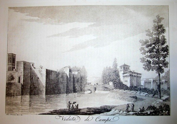 VEDUTA DEL CASTELLO DI CAMPI BISENZIO PRESSO FIRENZE. Riproduzione tratta da "Viaggio pittorico della Toscana" di Jacopo e Antonio Terreni.
