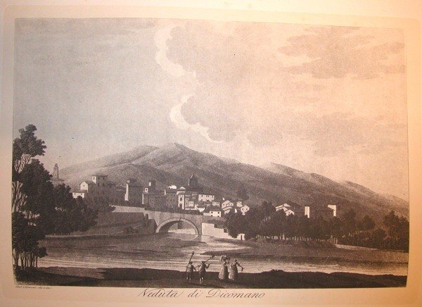 VEDUTA DEL CASTELLO DI DICOMANO. Riproduzione tratta da "Viaggio pittorico della Toscana" di Jacopo e Antonio Terreni.