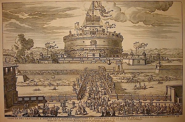 Veduta del Castello, e Ponte Sant’Angelo, abbellito, et adornato con le statue degli angeli da Papa Clemente IX. Disegno del Cav. Gio. Lorenzo Bernini.