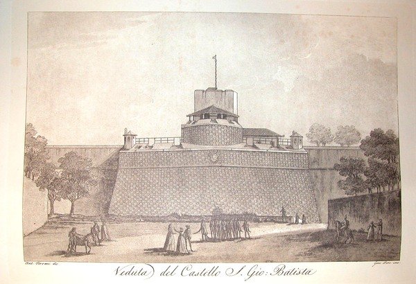 VEDUTA DEL CASTELLO S.GIOVANNI BATTISTA, OSSIA FORTEZZA DA BASSO, A FIRENZE. Riproduzione tratta da "Viaggio pittorico della Toscana" di Jacopo e Antonio Terreni.