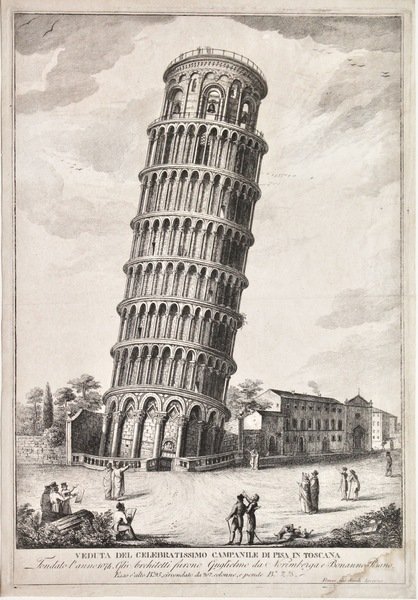 Veduta del celebratissimo campanile di Pisa in Toscana fondato l'anno 1074. Gli architetti furono Guglielmo da Norimberga e Bonanno Pisano. <BR>
